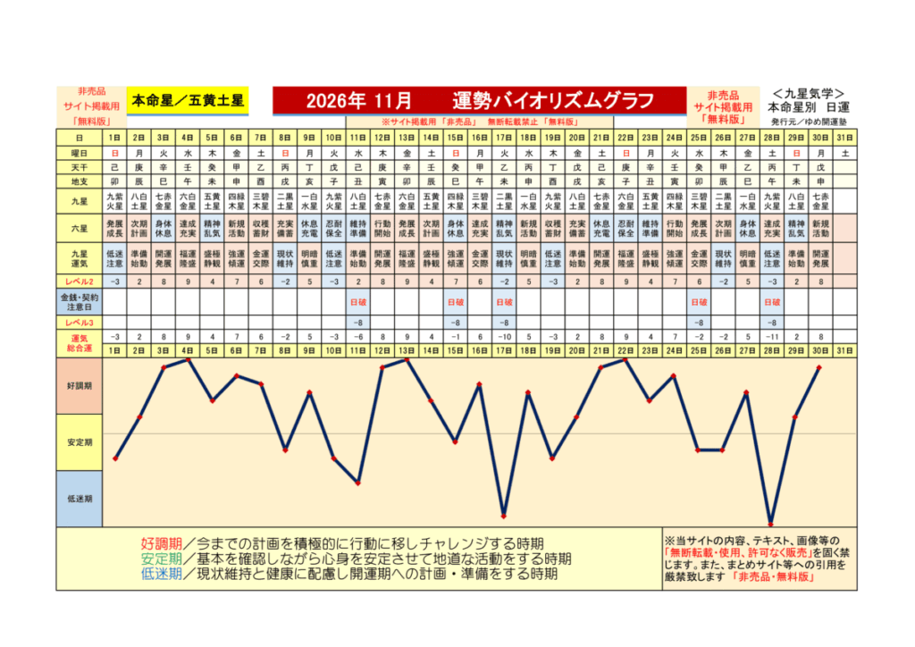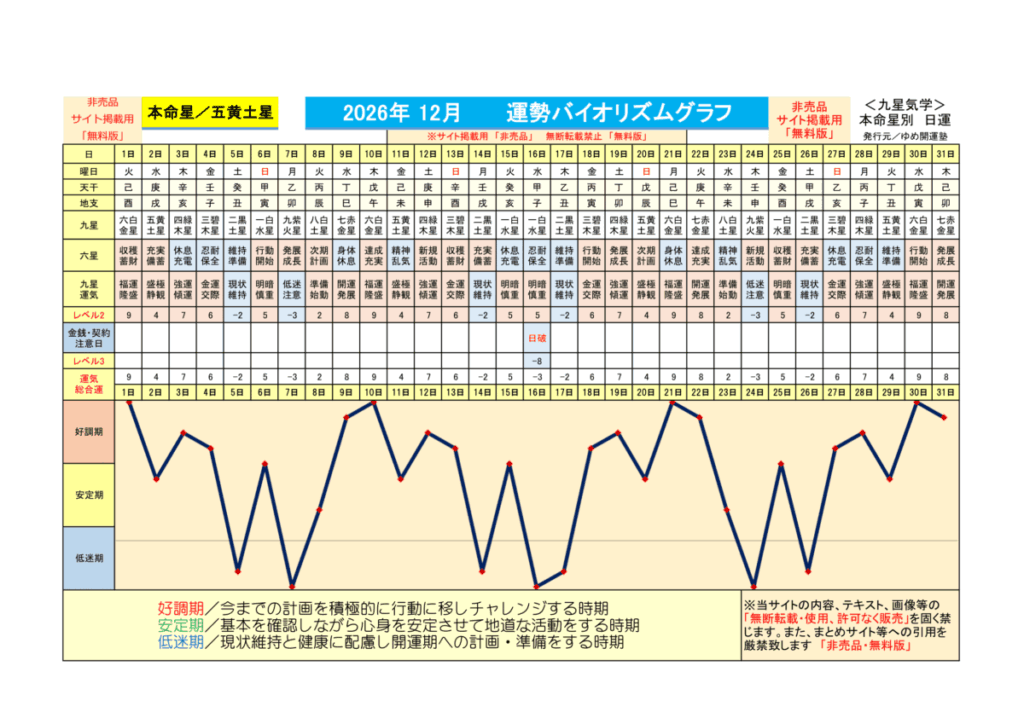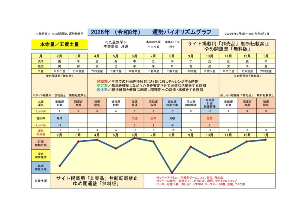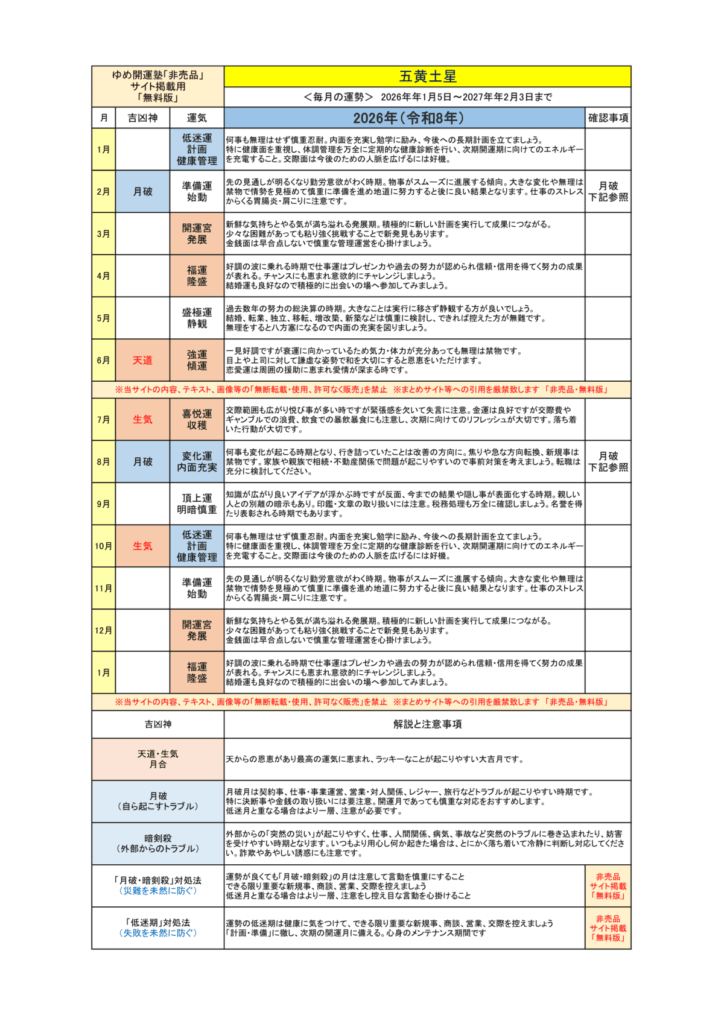 (2026年1月~2027年1月)五黄土星/毎月の運勢ポイント
