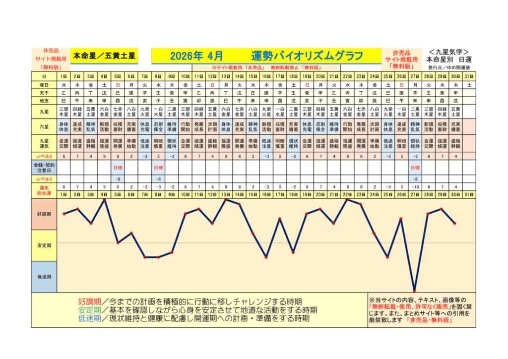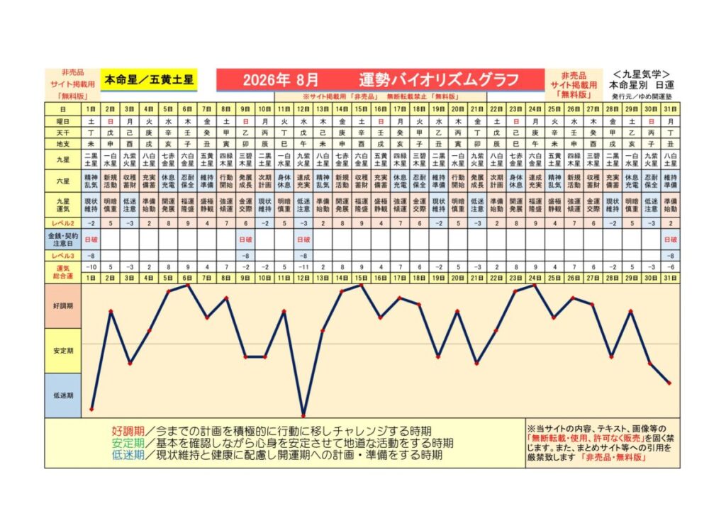 2026年8月 <変化運、維持期…大凶運> ●月破付き