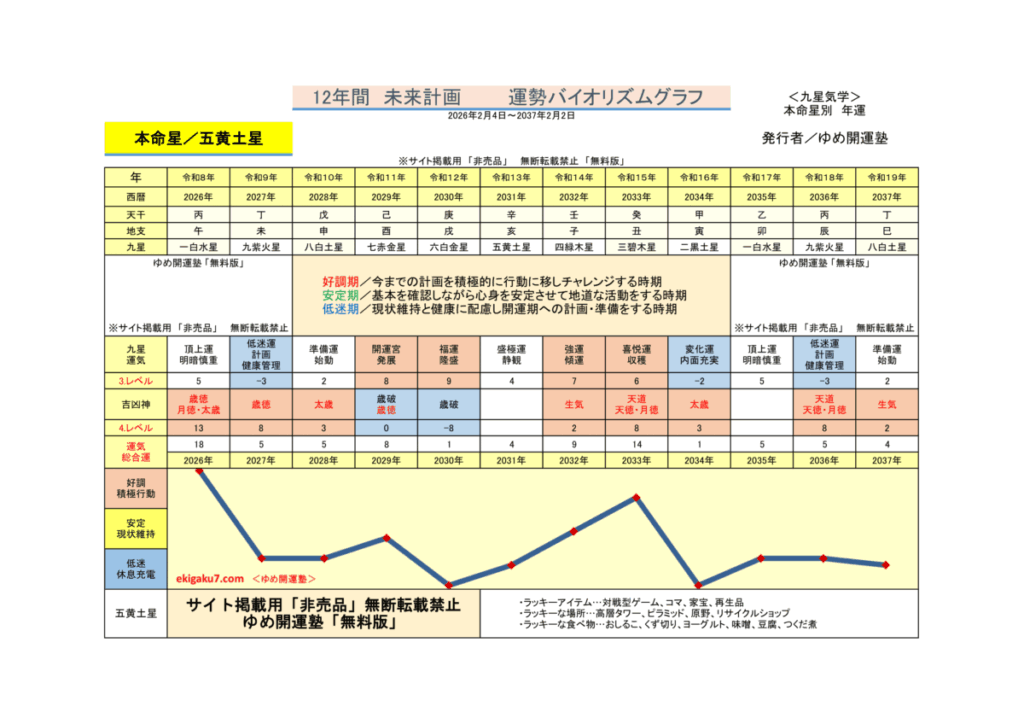 五黄土星/運勢未来グラフ(12年間/2026年~2037年)