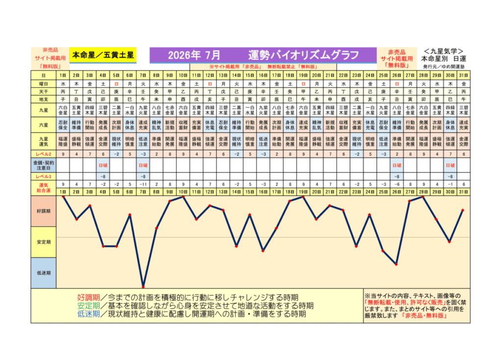 2026年7月 <喜悦運、収穫期…吉運> ○生気付き