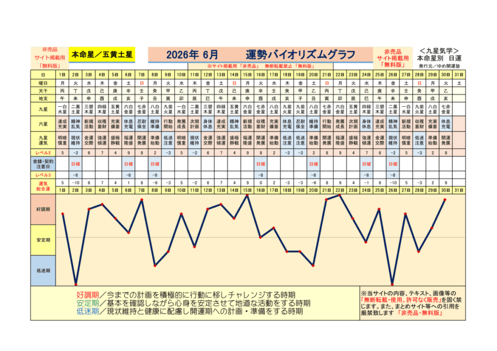 2026年6月 <強傾運、結実期…中吉運> ○天道付き