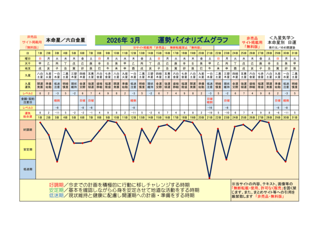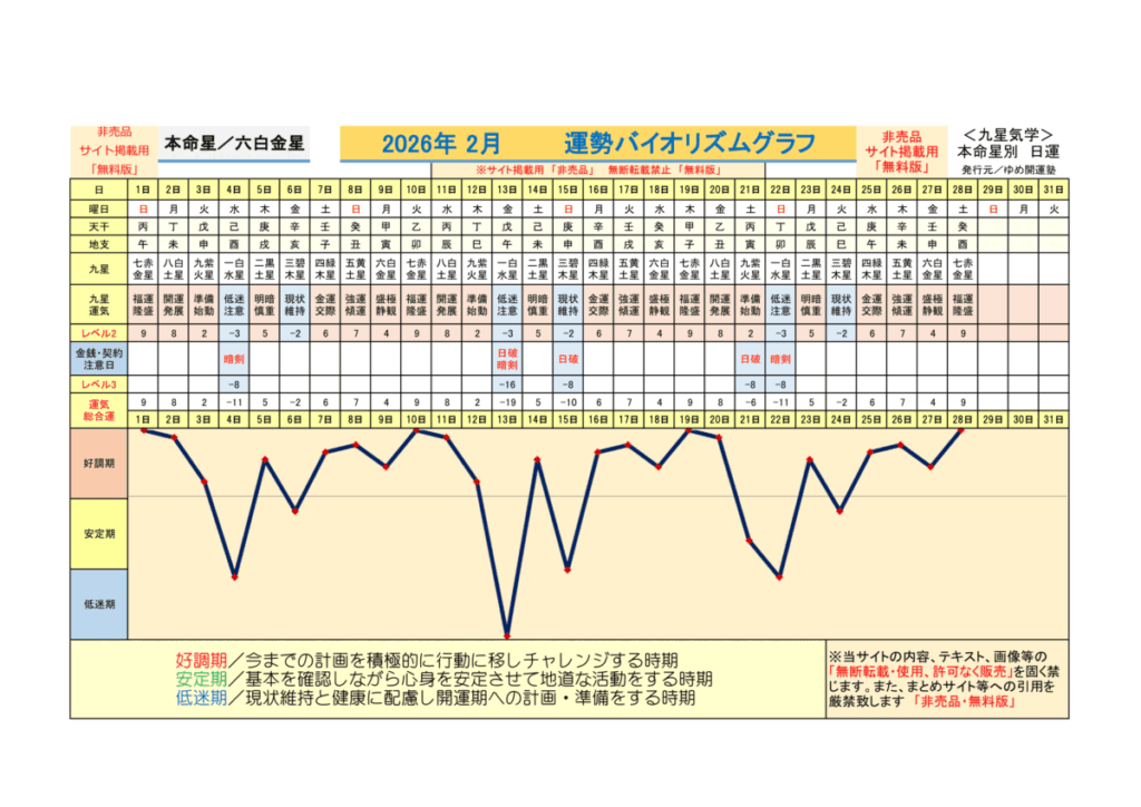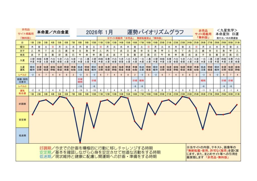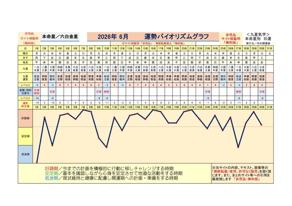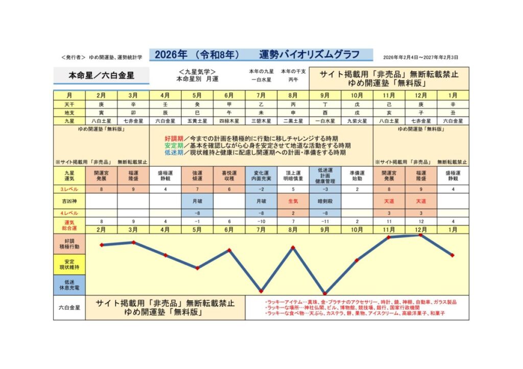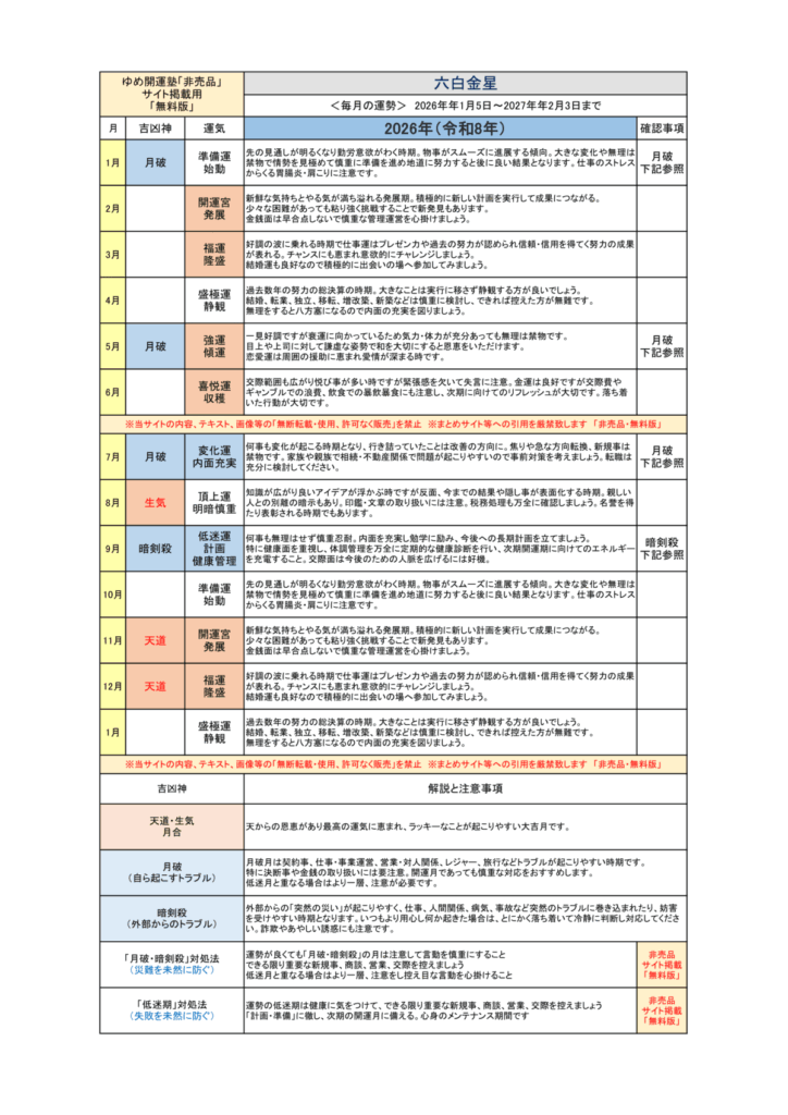 (2026年1月~2027年1月)六白金星/毎月の運勢ポイント