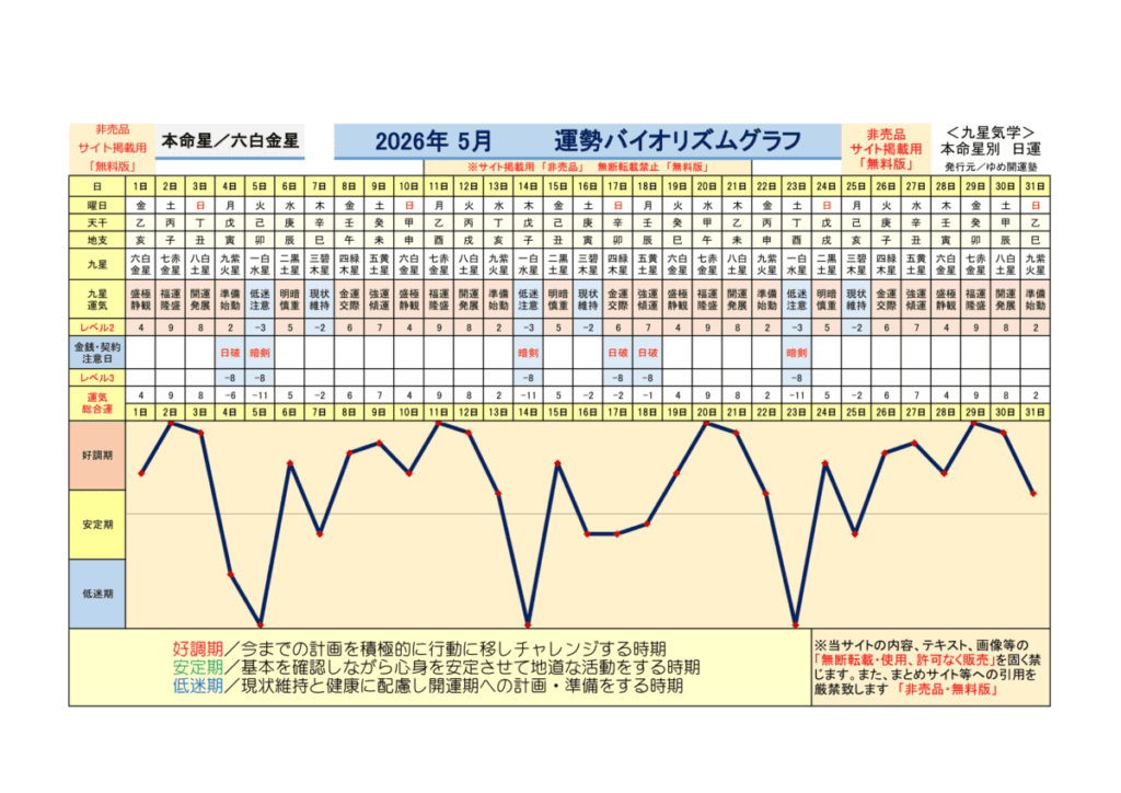 2026年5月 <強傾運、結実期…半吉運> ●月破付き