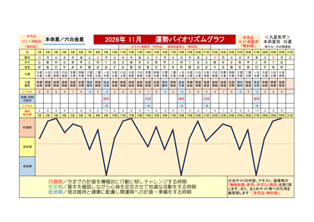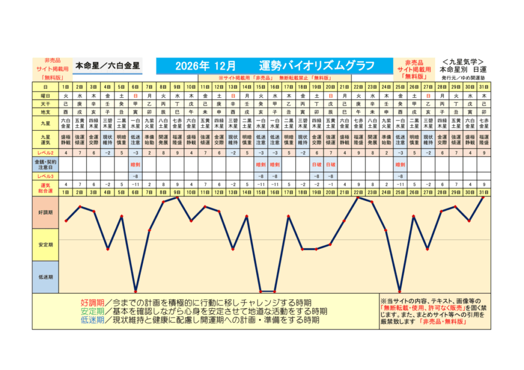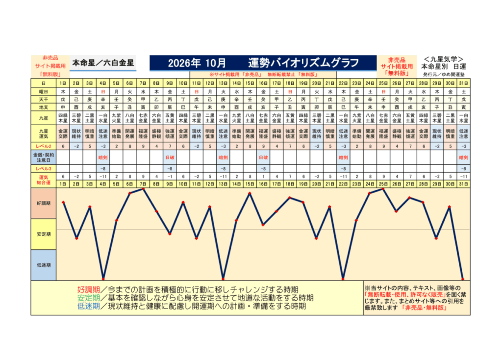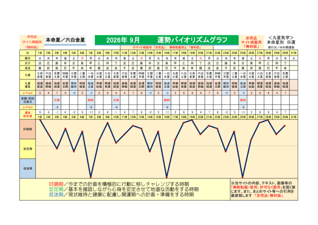 2026年9月 <停滞運、低迷期…大凶運> ●暗剣殺付き