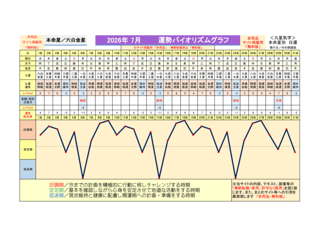 2026年7月 <変化運、維持期…大凶運> ●月破付き