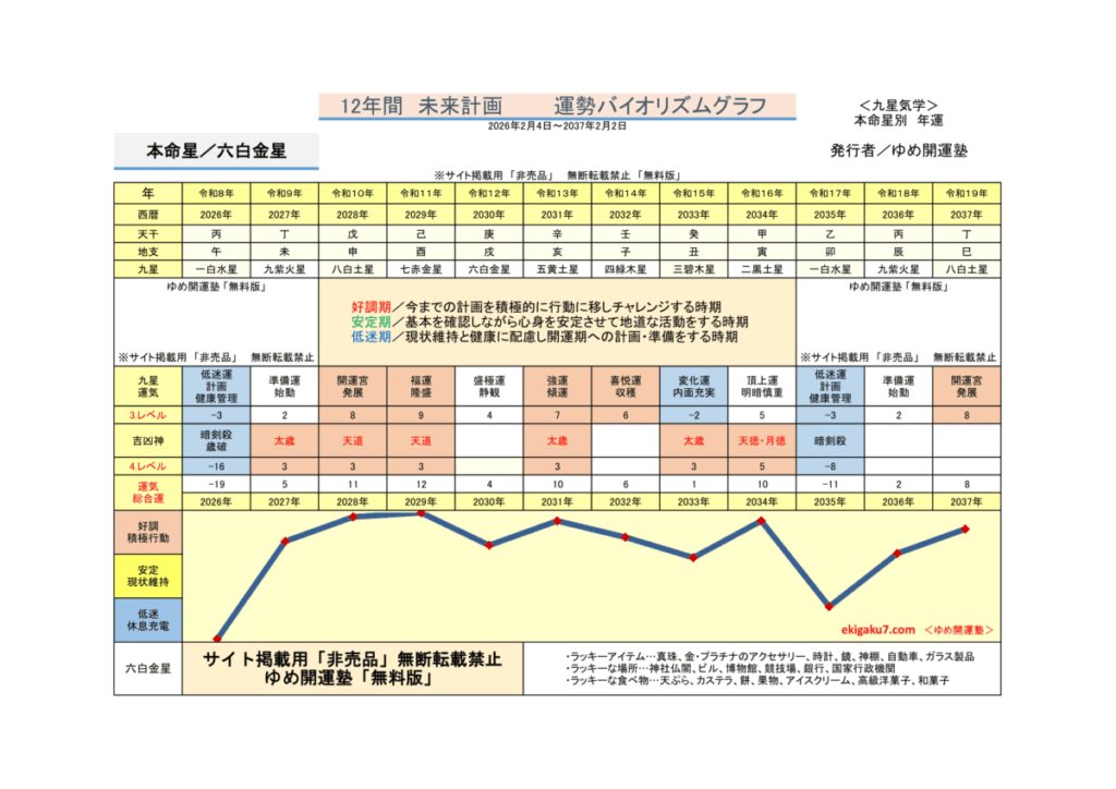 六白金星/運勢未来グラフ(12年間/2026年~2037年)