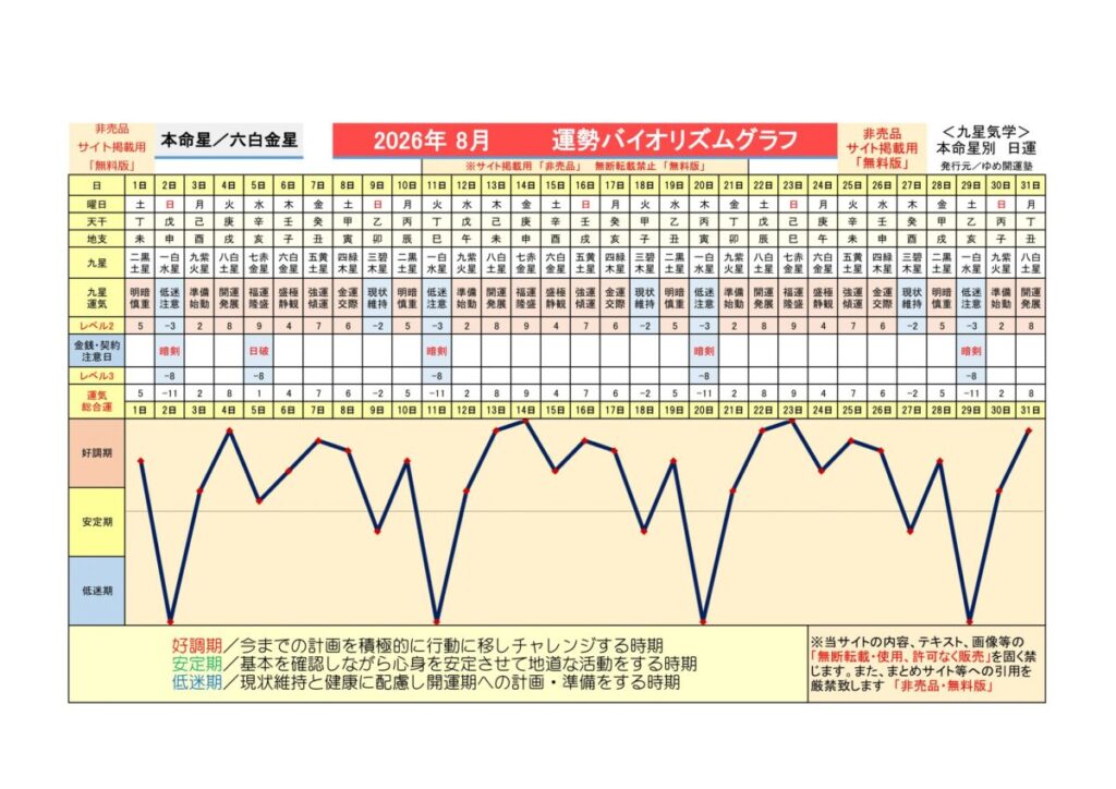 2026年8月 <頂上運、明暗期…吉運> ○生気付き