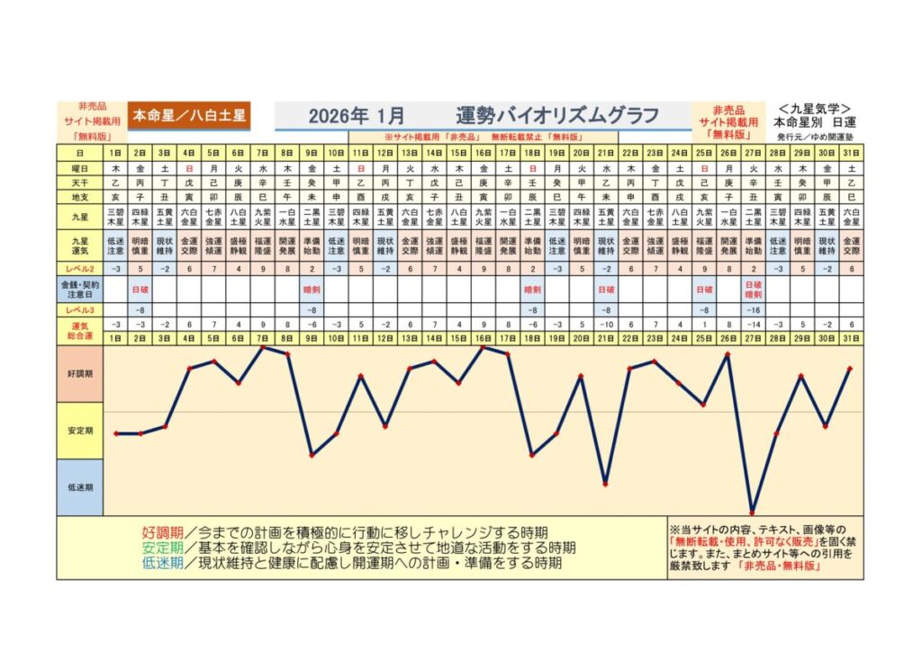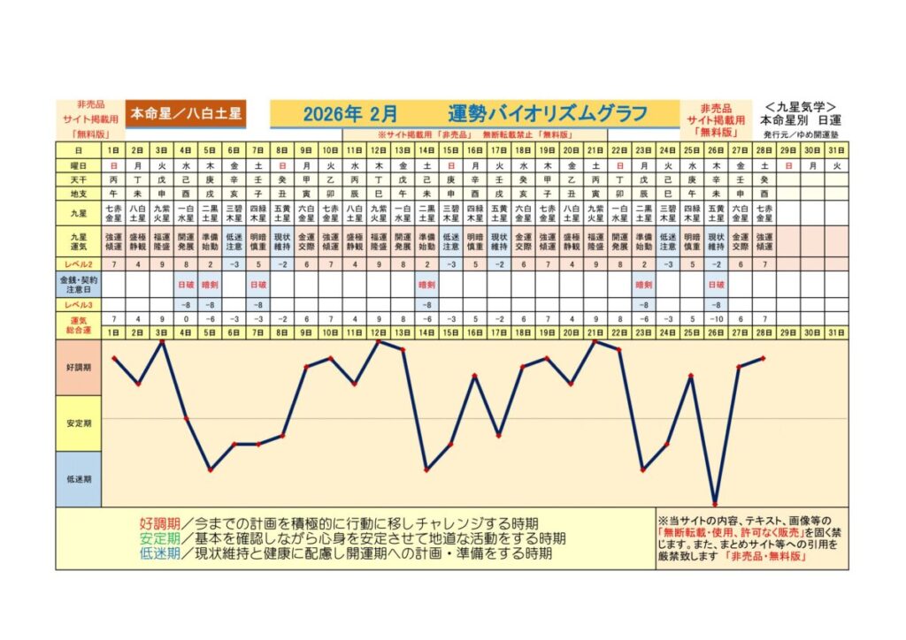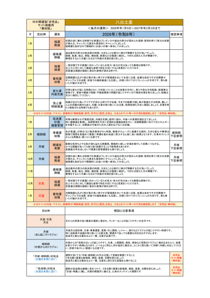 (2026年1月~2027年1月)八白土星/毎月の運勢ポイント