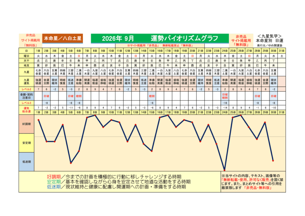 2026年9月 <発展運、開運期…半吉運> ●月破付き