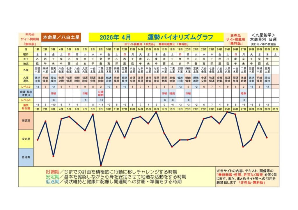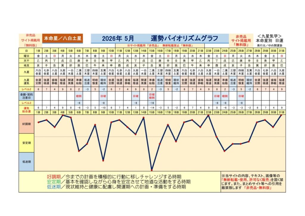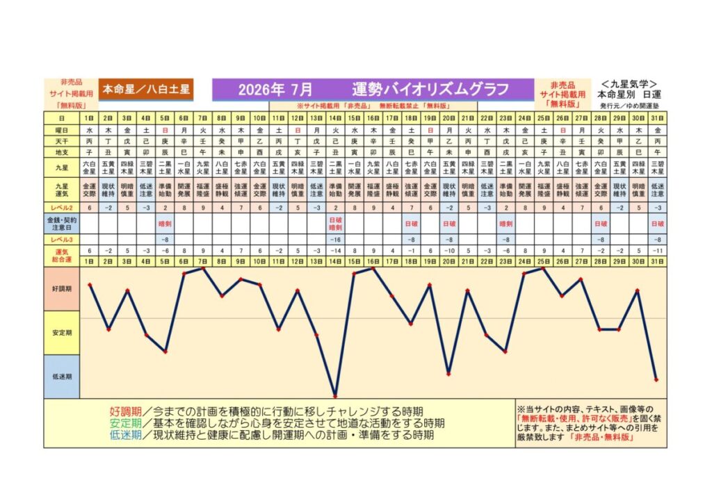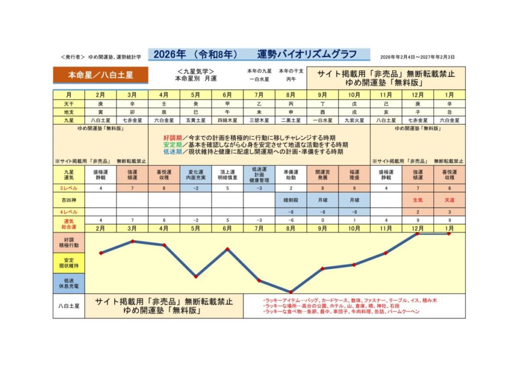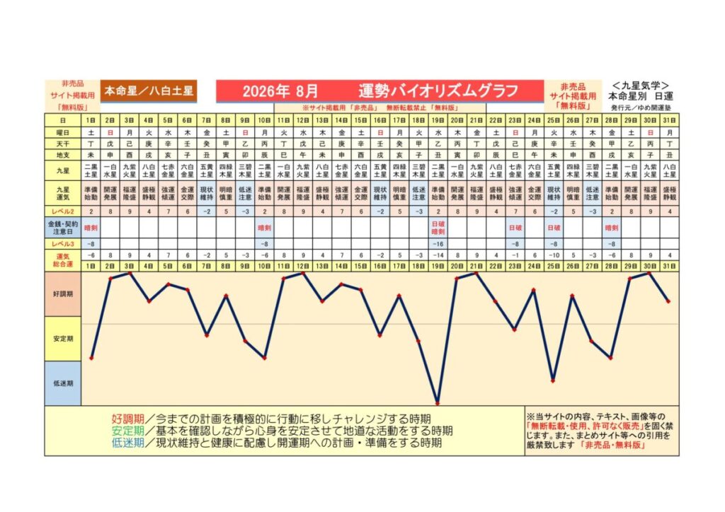 2026年8月 <向上運、準備期…小吉運> ●暗剣殺付き
