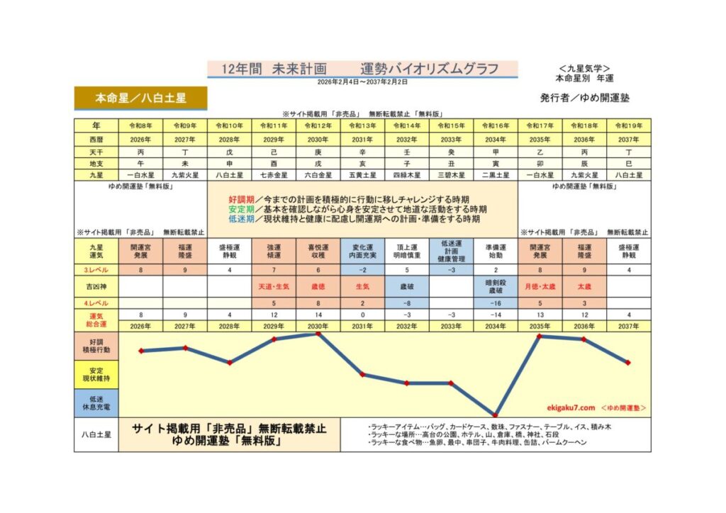 八白土星/運勢未来グラフ(12年間/2026年~2037年)