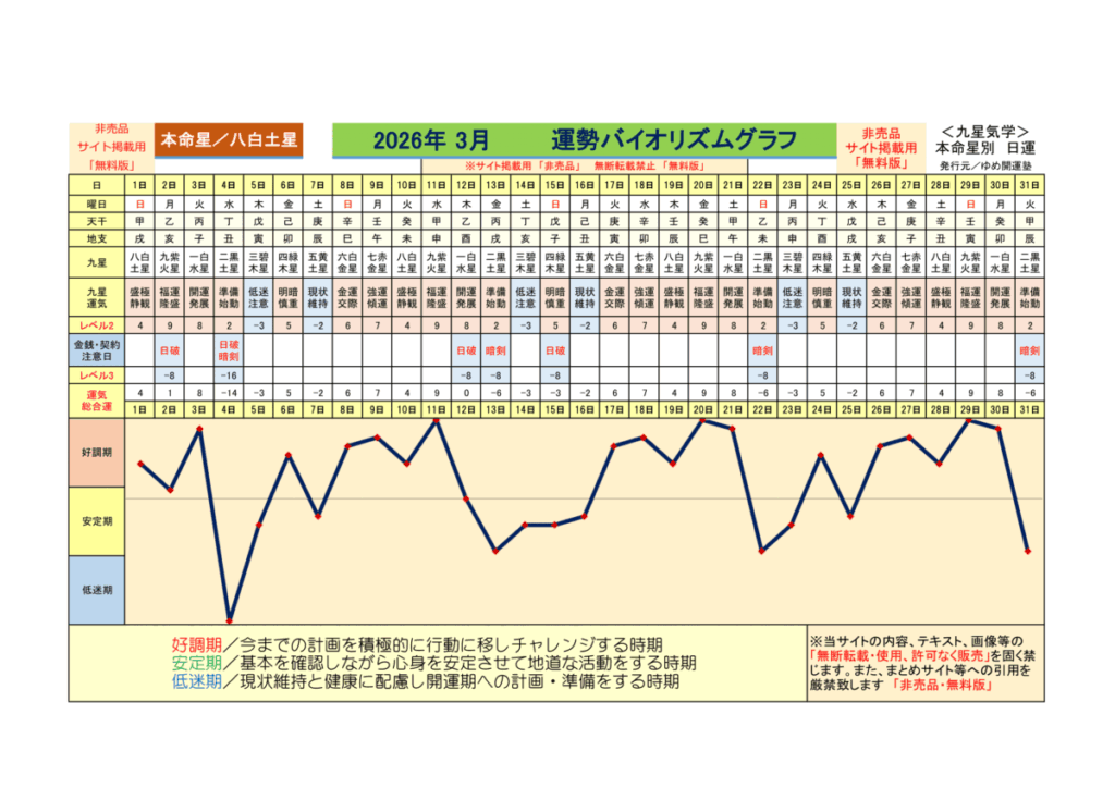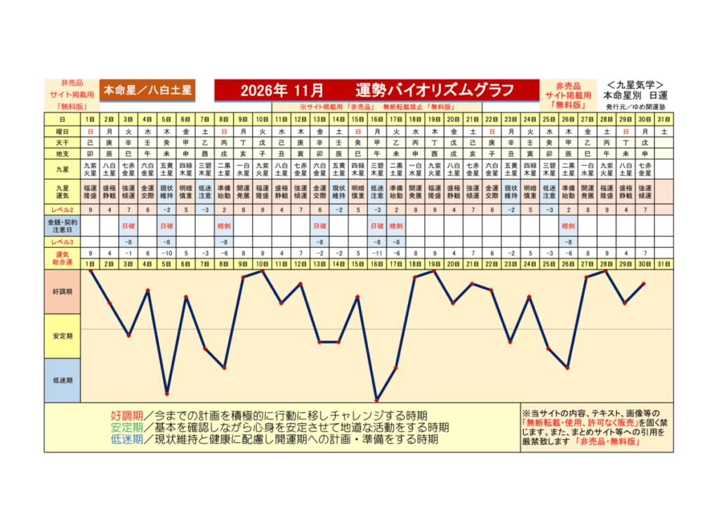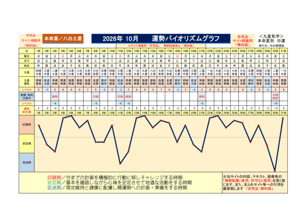 2026年10月 <福徳運、隆盛期…半吉運> ●月破付き