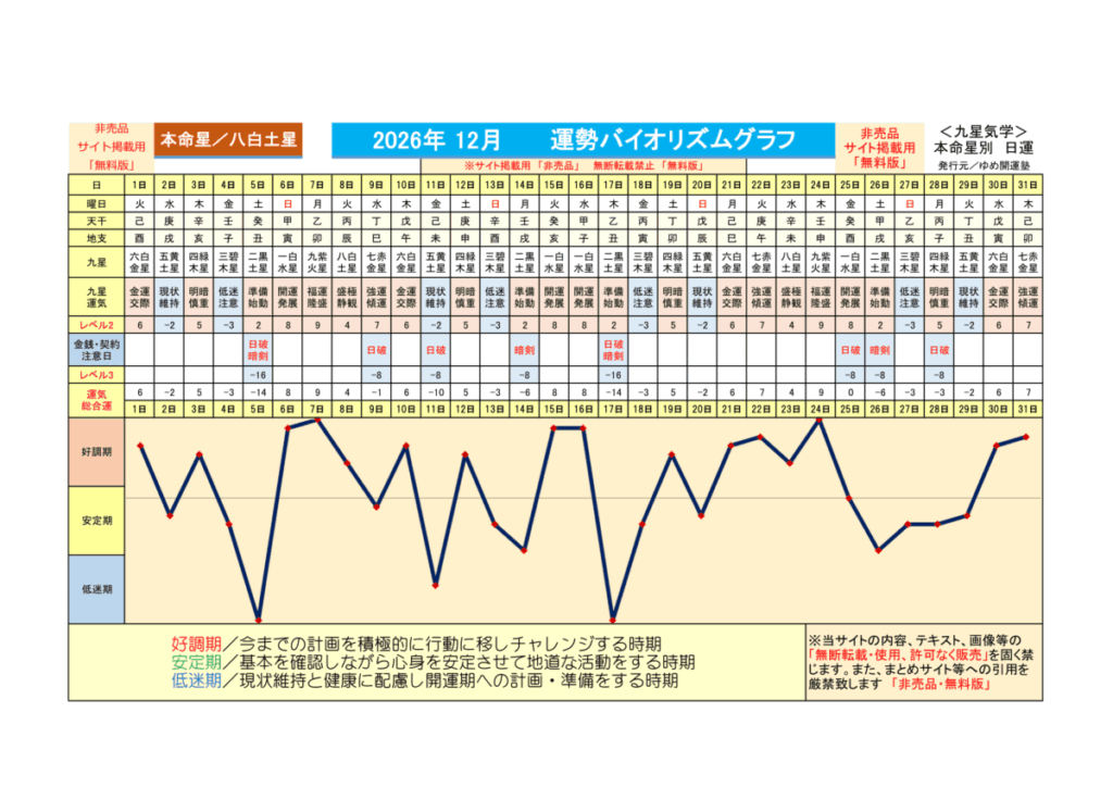 2026年12月 <強傾運、結実期…中吉運> ○生気付き