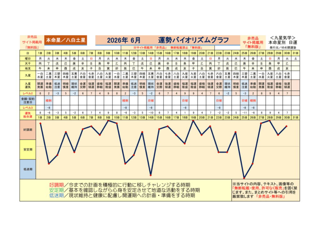 年月日の運勢開運バイオリズムグラフを参考に未来の運気の流れを知って安定したスケジュール計画を立てましょう!あなたの幸福と平和を願っております。最後までお読みいただきありがとうございました。