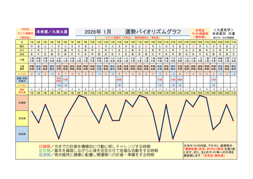 (2026年)好調日・日破日・暗剣日一覧