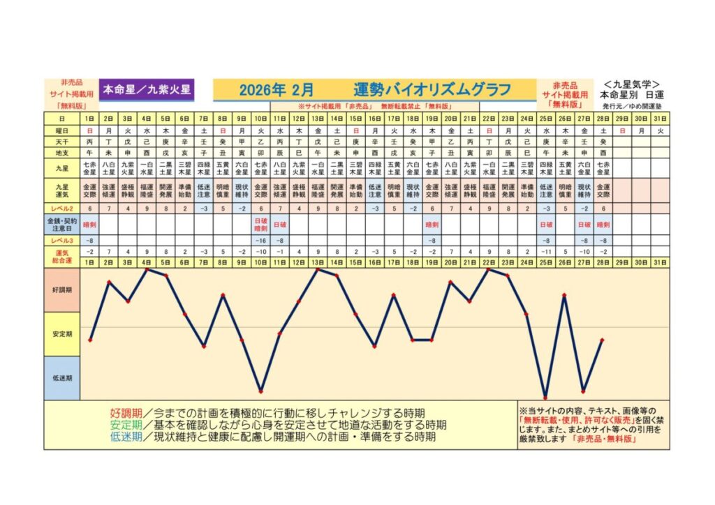 2026年2月 <強傾運、結実期…中吉運>