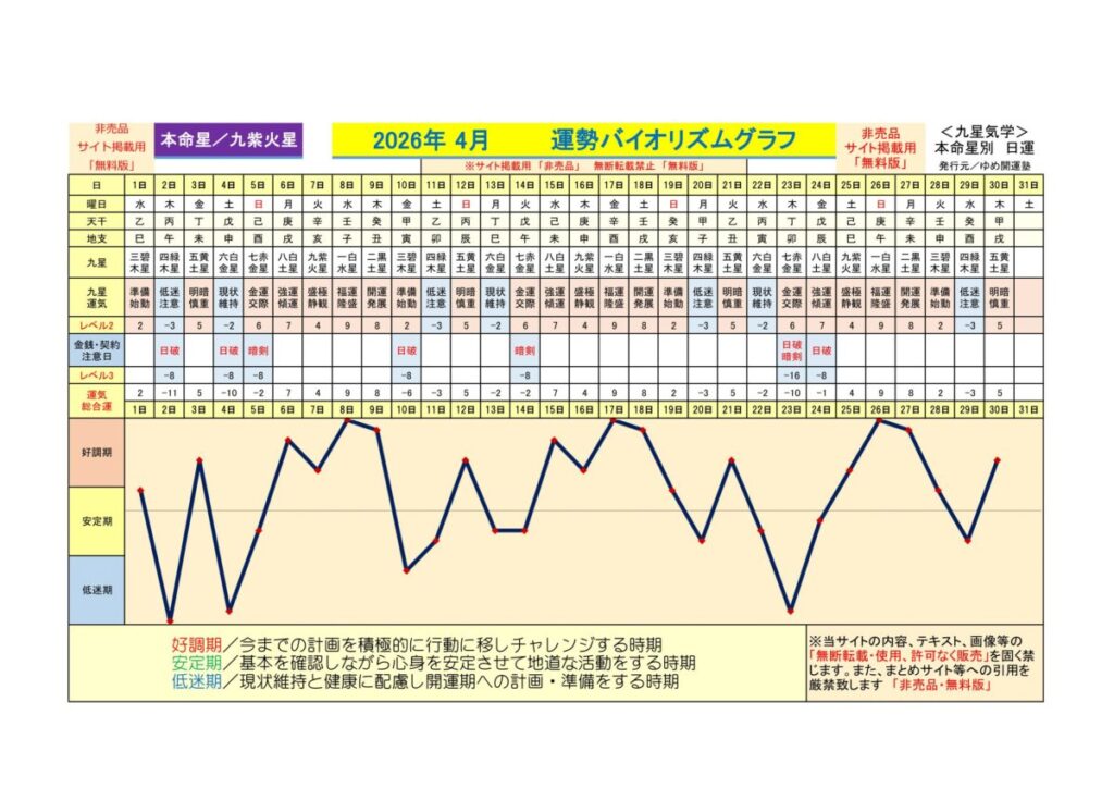 2026年4月 <変化運、維持期…凶運>