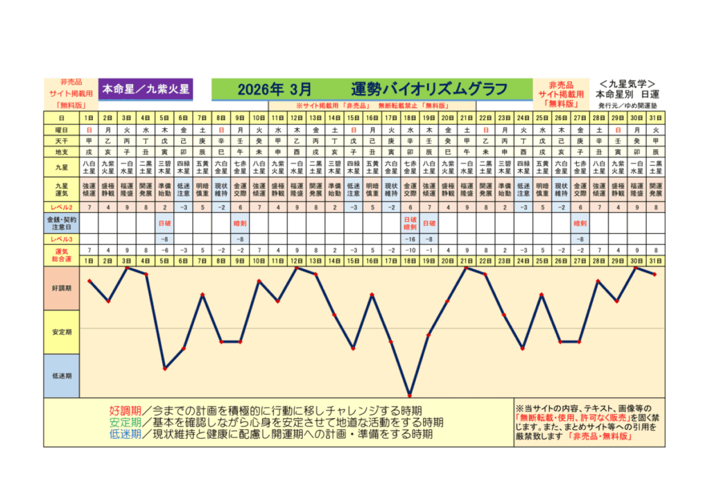 2026年3月 <喜悦運、収穫期…大凶運> ●月破付き ●暗剣殺付き