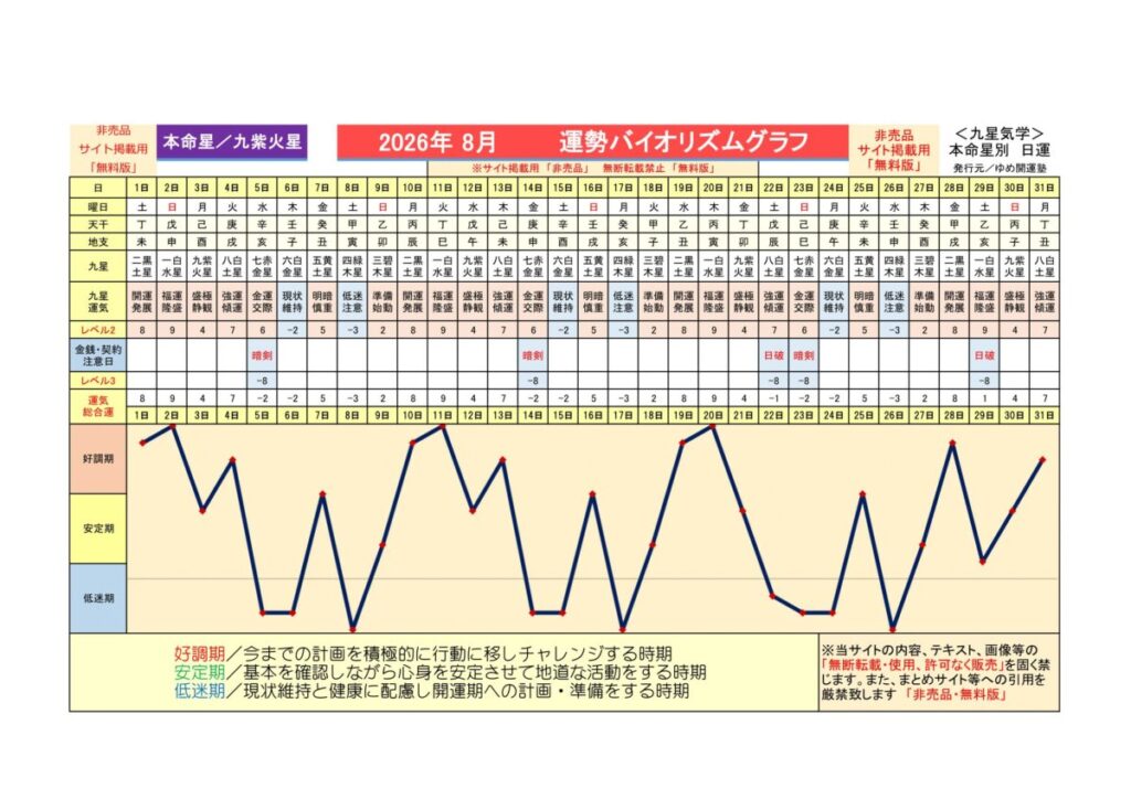 2026年8月 <発展運、開運期…中吉運>