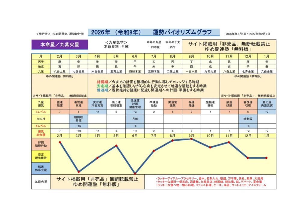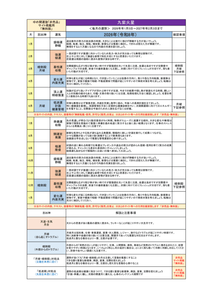 (2026年1月~2027年1月)九紫火星/毎月の運勢ポイント