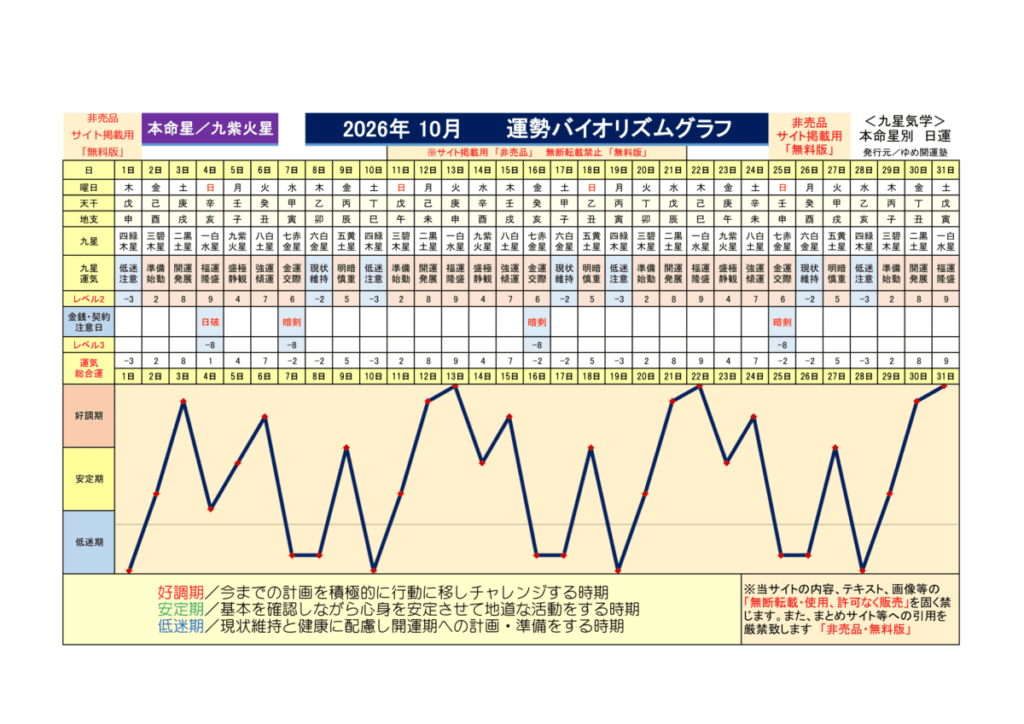 <2026年10月>毎日のバイオリズムグラフ