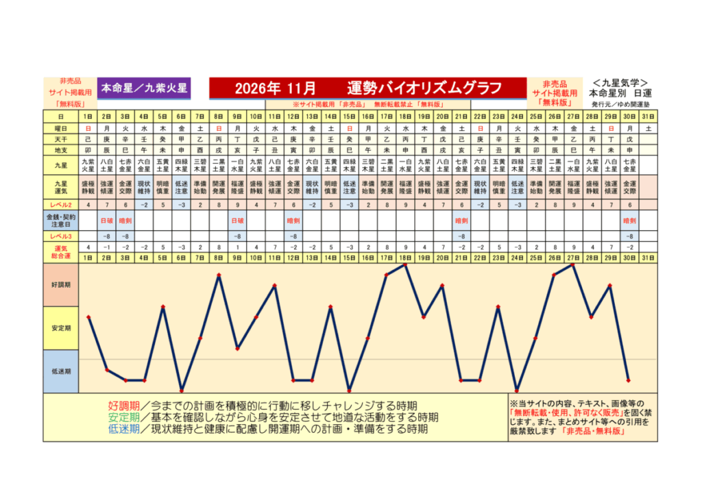 2026年11月 <強傾運、結実期…中吉運>