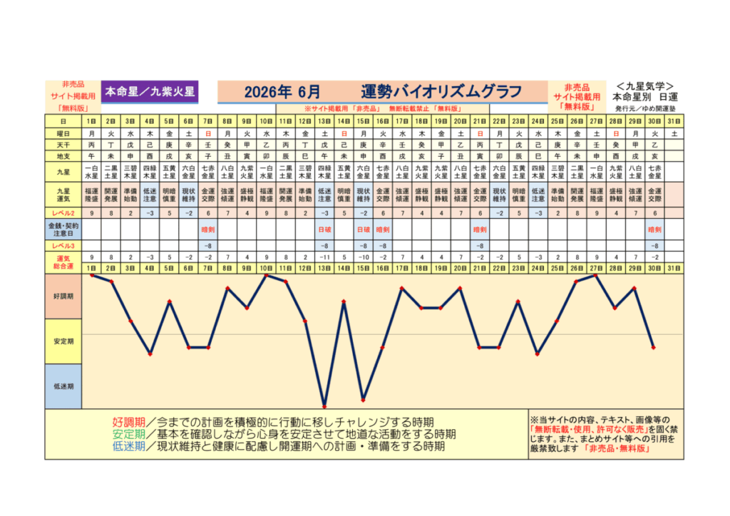2026年6月 <停滞運、低迷期…大凶運> ●月破付き